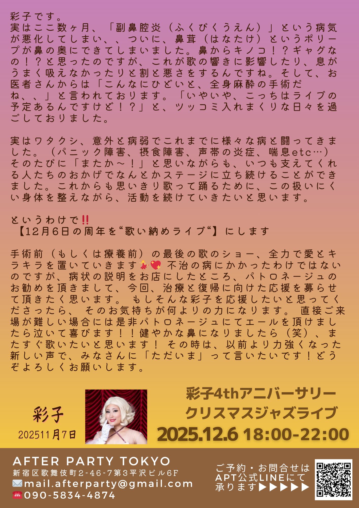 【遠隔祝いボトル】彩子嬢4周年歌い納めライブパトロネージュ