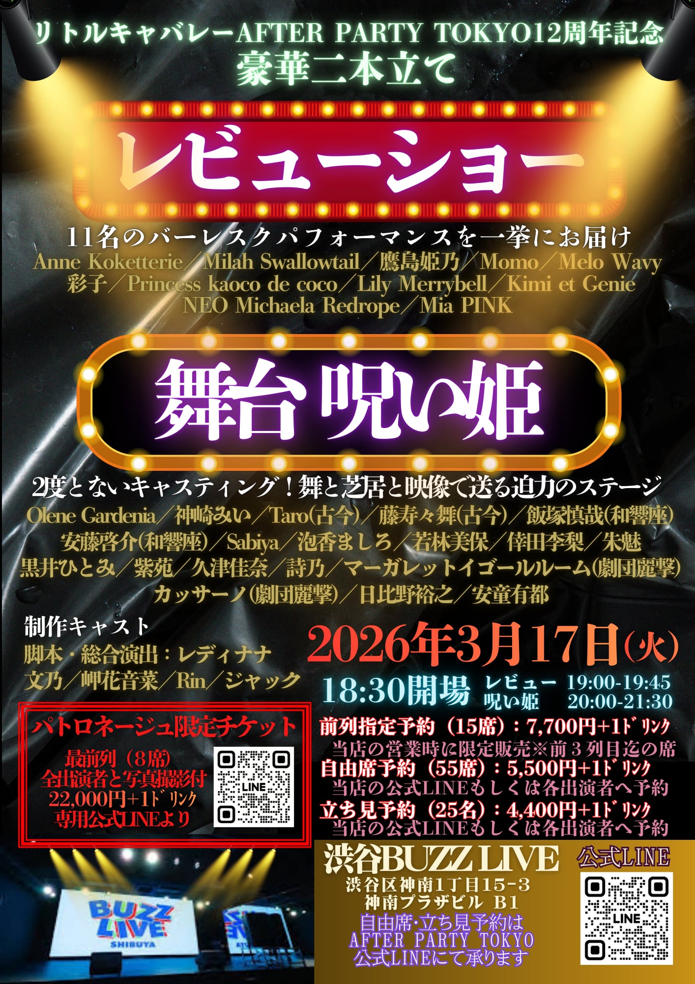 2026年3月17日(火)APT12周年記念公演支援パトロネージュチケット